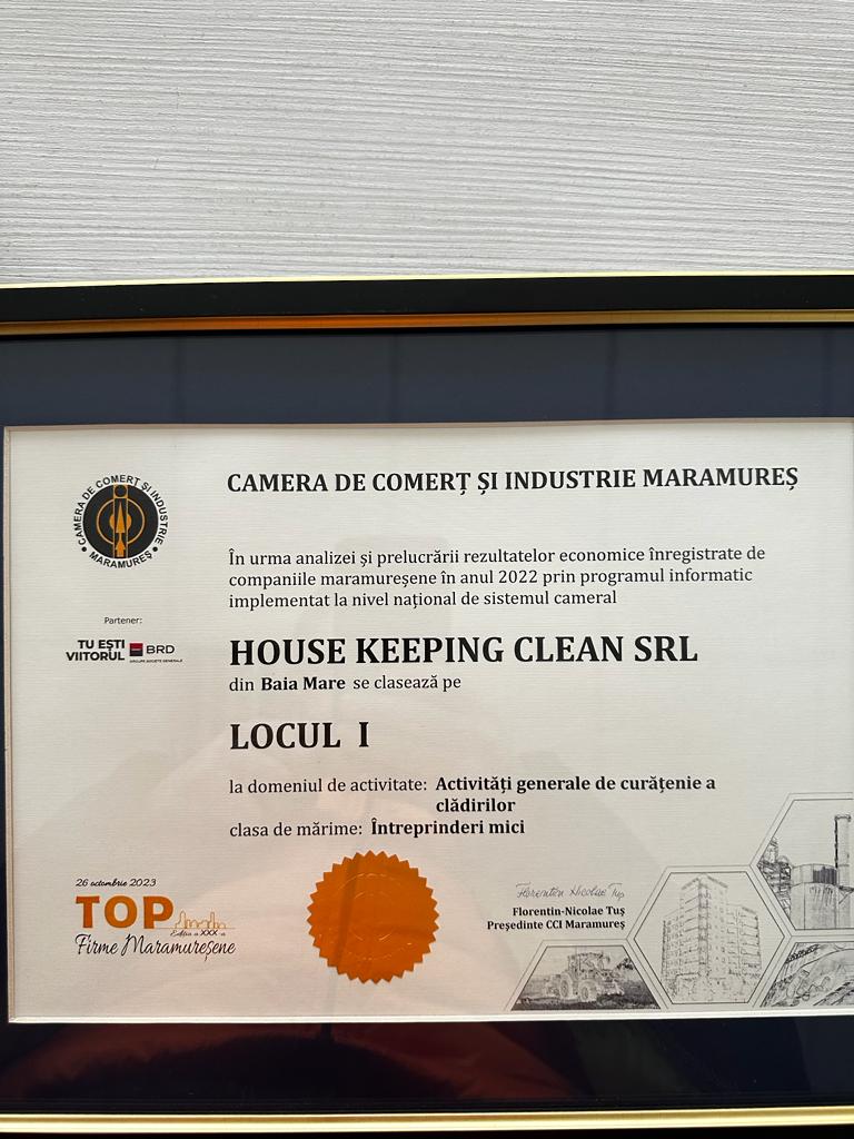 Am obtinut aceste premii datorita profesionalismului si a seriozitatii cu care tratam fiecare lucrare contractata. Aceste distinctii sunt importante pentru House Keeping, deoarece intelegem ca suntem o firma apreciata si competitiva. Totodata, ne onoreaza ca ne situam in fruntea companiilor din Maramures in domeniul curateniei in care activam. Fiind pe piata din 2003, avem o echipa solida si priceputa, care este fundamentul pe care am cladit aceasta companie.